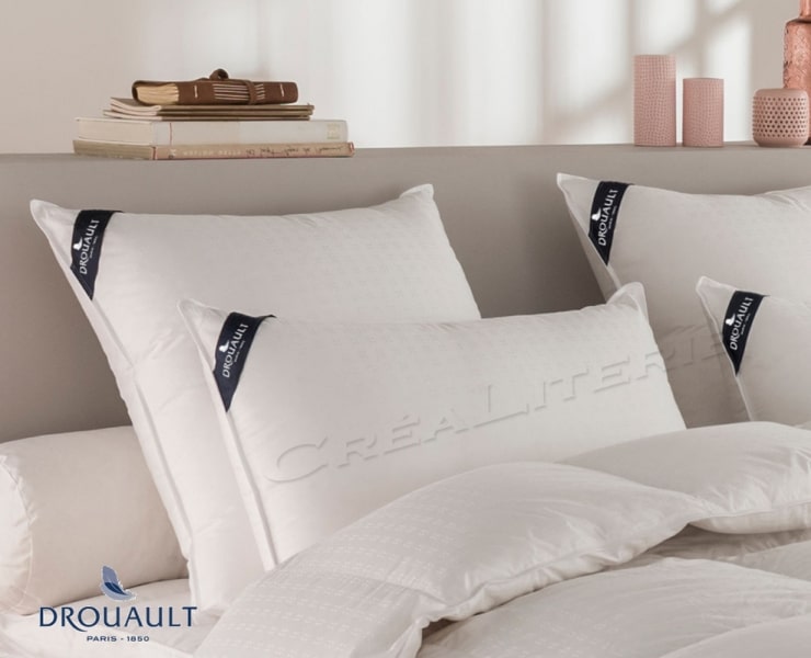 Oreiller Drouault Platinium en duvet d’Oie haute qualité extra blanc Fabriqué en France