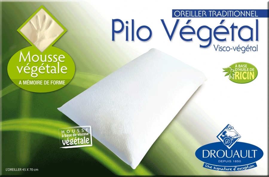 Oreiller PILO Végétal 45×70 Drouault à mémoire de forme enrichie en huile Végétale Fabrication Française