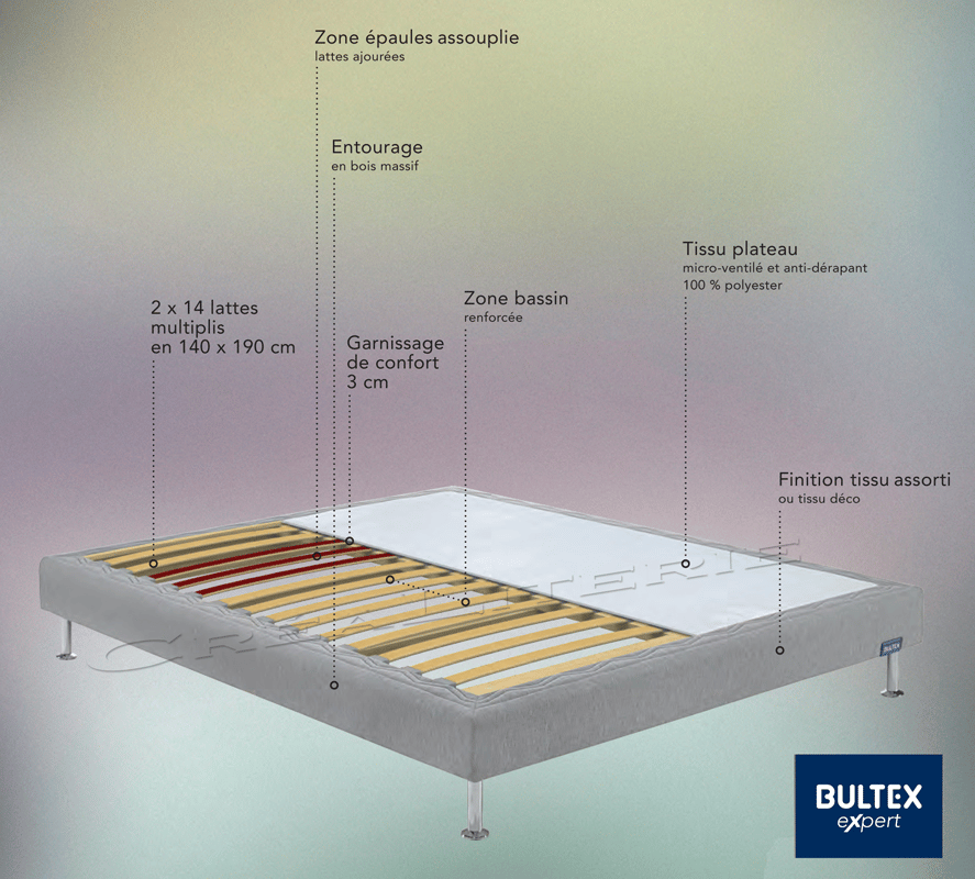 Sommier Bultex Ottimo 17 cm lattes multiplis, confort moelleux, 5 zones de confort Fabriqué en France