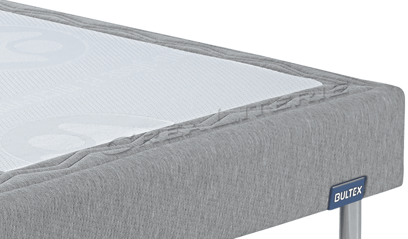 Le sommier Ottimo lattes multiplis possède une plate-bande en tissu gris foncé qui est assorti au coutil de la bande des matelas de la collection Expert DUO de Bultex pour une esthétique parfaite.
