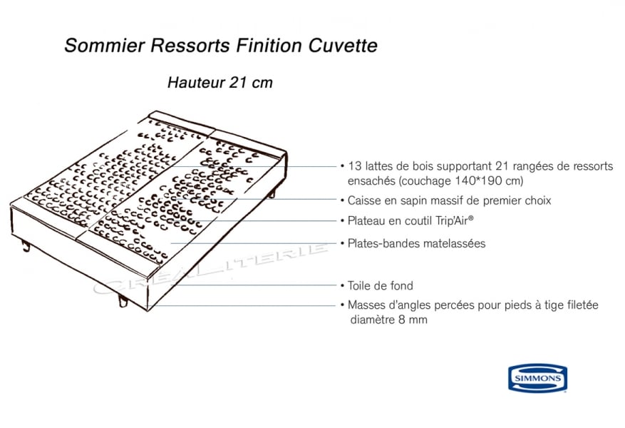 Sommier Ressorts finition cuvette de la collection Simmons 2022.