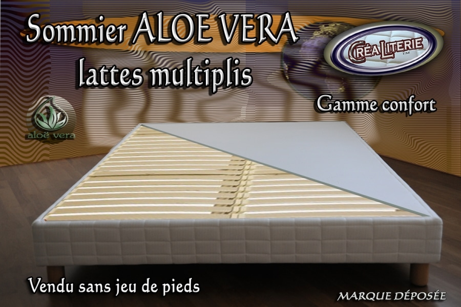 Sommier tapissier ALOÉ VÉRA à lattes multiplis hauteur 15 cm (coutil Aloé Véra) Fabrication Française par Créaliterie.LITERIE GAMME CONFORTSommier tapissier ALOÉ VÉRA à lattes…