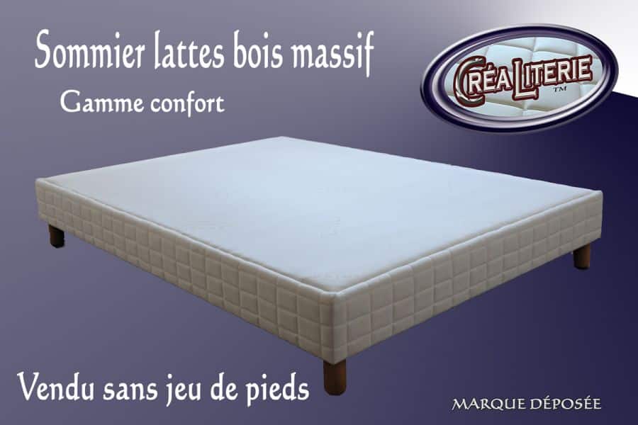 Sommier tapissier lattes bois massif LITERIE GAMME CONFORT Sommier tapissier de notre gamme CONFORT à lattes bois massif, d’une hauteur de 15 cm, recouvert d’un…