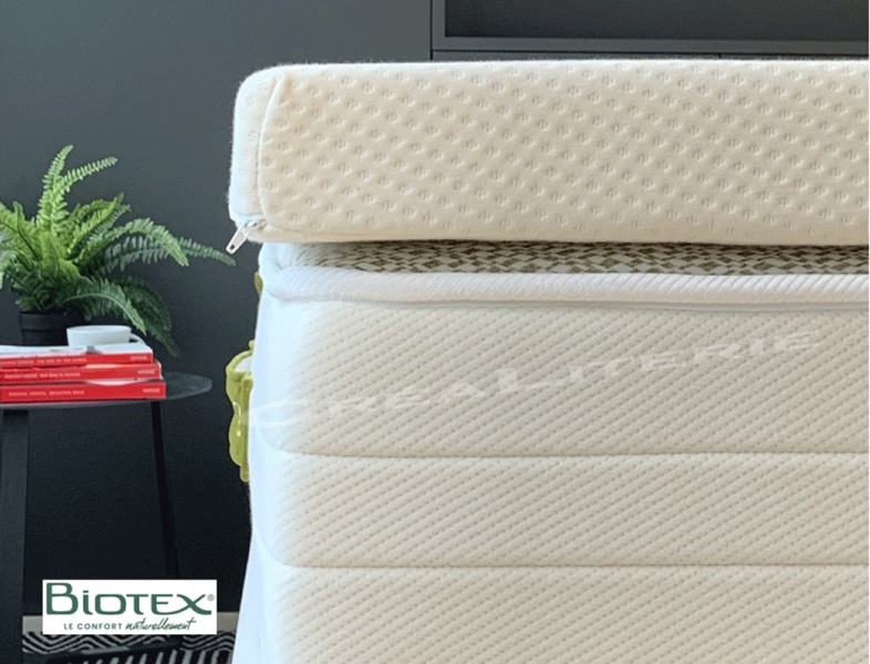 Surmatelas mémo sensitive Biotex 160×200 Visco Végétale à mémoire de forme housse coton bio Fabrication Française par Biotex.
