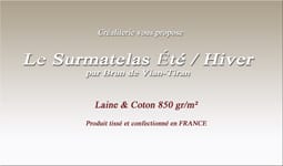 Surmatelas ÉTÉ/HIVER 850 gr/m² en 100% laine Vierge et coton, tissée et confectionnée en FRANCE par Brun de Vian-Tiran.