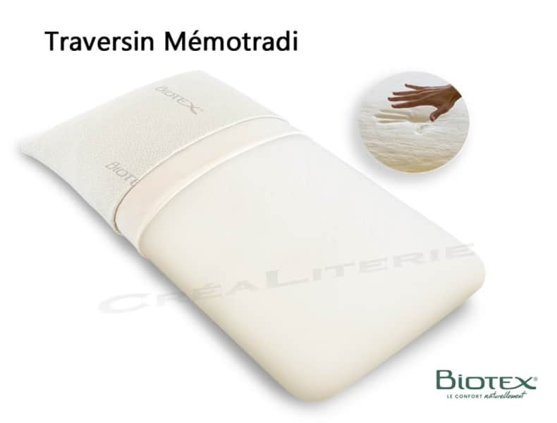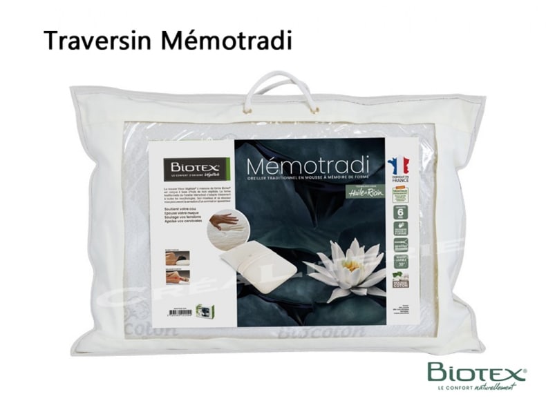 Traversin Biotex Mémotradi en mousse végétale à mémoire de forme à base d’huile de Ricin Fabriqué en France par BIOTEX. Traversin Mémotradi mémo sensitive…