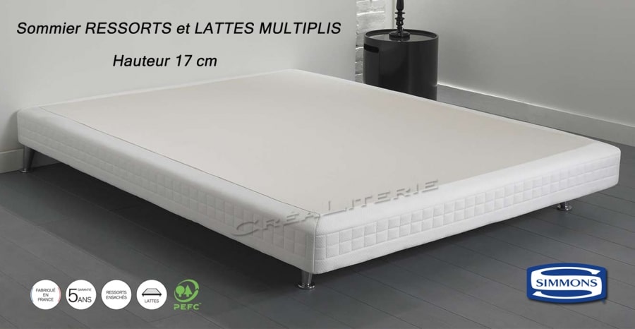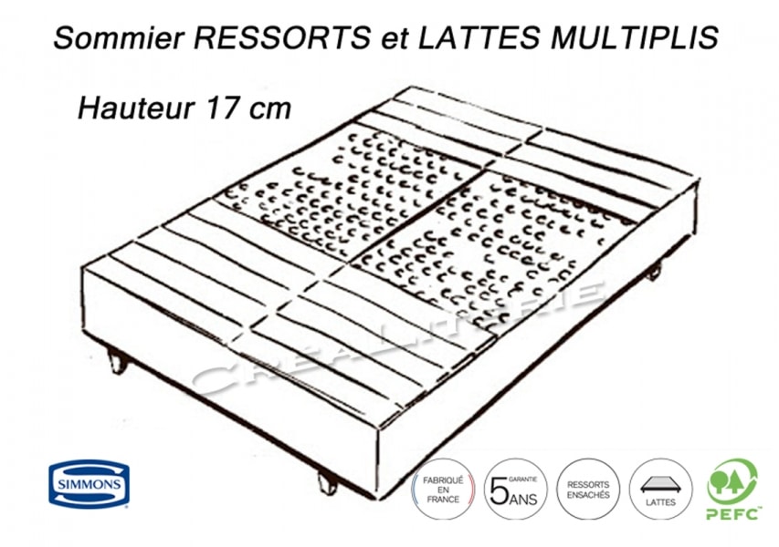 Simmons Sommier Lattes Multiplis Hauteur 17 cm, confort ferme Fabriqué en France par Simmons. Sommier LATTES MULTIPLIS hauteur 17 cm...